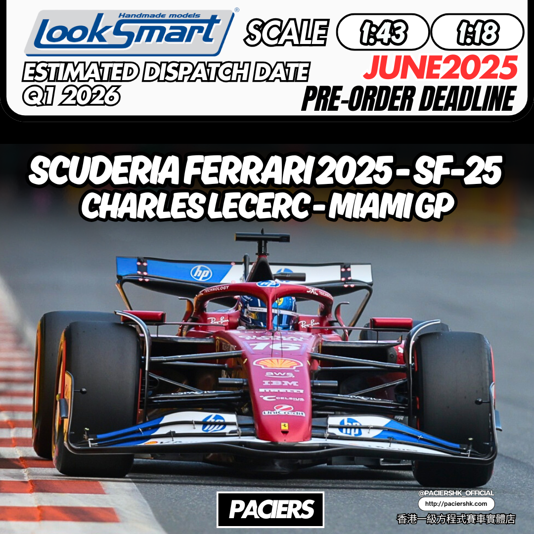 ![[Pre-Order] Looksmart 1:43 | 1:18 Scuderia Ferrari 2025 SF-25 Charles Leclerc Miami GP Special Livery](http://paciershk.com/cdn/shop/files/9_36df8070-7ece-48cc-98c9-0879f37946ff.png?v=1749036441&width=1445)