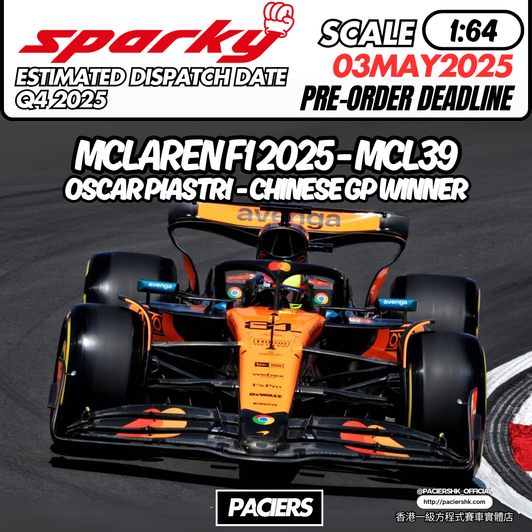 ![[Pre-Order] Sparky 1:64 McLaren F1 2025 MCL39 Oscar Piastri - Chinese GP Winner](http://paciershk.com/cdn/shop/files/10_7687be47-6fce-4b0c-a736-90188b2bceb3.png?v=1745133668&width=1445)