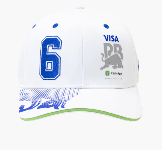 - Visa Cash App Racing Bulls HD logo print on the left front crown