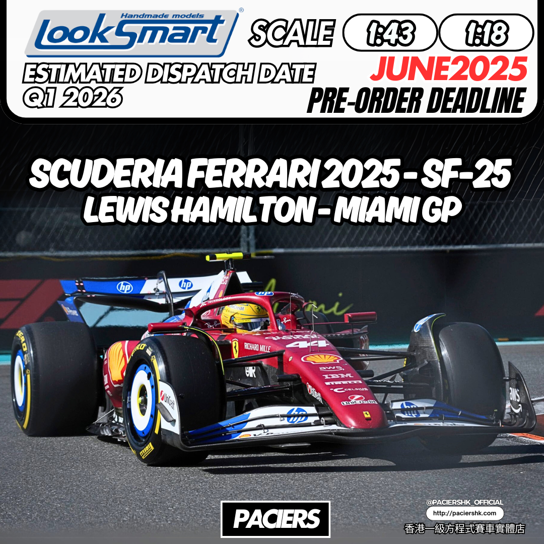 ![[Pre-Order] Looksmart 1:43 | 1:18 Scuderia Ferrari 2025 SF-25 Lewis Hamilton Miami GP Special Livery](http://paciershk.com/cdn/shop/files/8_c47d49ab-b1ff-4123-8a16-0359f03f4b16.png?v=1749036544&width=1445)